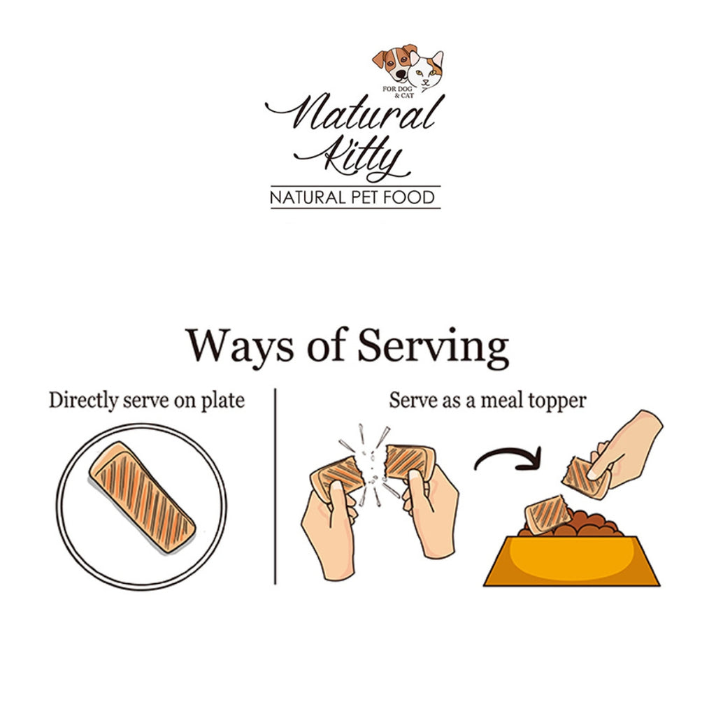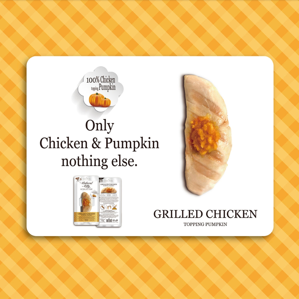 Natural Kitty Original Series, Grilled chicken topping pumpkin is sourced from 100% real chicken and grilled to enhance taste and further topped with pumpkin making the treat tasty to our pets. Grilled Chicken Topping Pumpkin is well-cooked and prepared to preserve the great taste and important nutrients. It is the best daily reward for your pets. You can feed your pets everyday with Natural Kitty as a reward or treat or feed as a light meal, or as a complement to their main meal.